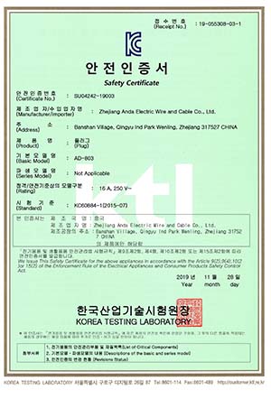 產(chǎn)品通過了中國CCC、德國VDE、英國BSI、澳大利亞SAA、巴西Brazil、阿根廷IRAM、韓國KC、日本PSE、GCC海灣七國、新加坡等安規(guī)認(rèn)證,嚴(yán)格按ISO9001:2015 國際質(zhì)量管理體系生產(chǎn),符合歐盟ROHS,REACH環(huán)保標(biāo)準(zhǔn)。
